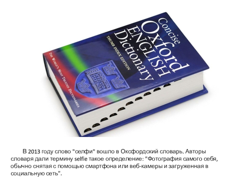 Слайд 10 В 2013 году слово "селфи" вошло в Оксфордский словарь. Авторы словаря
