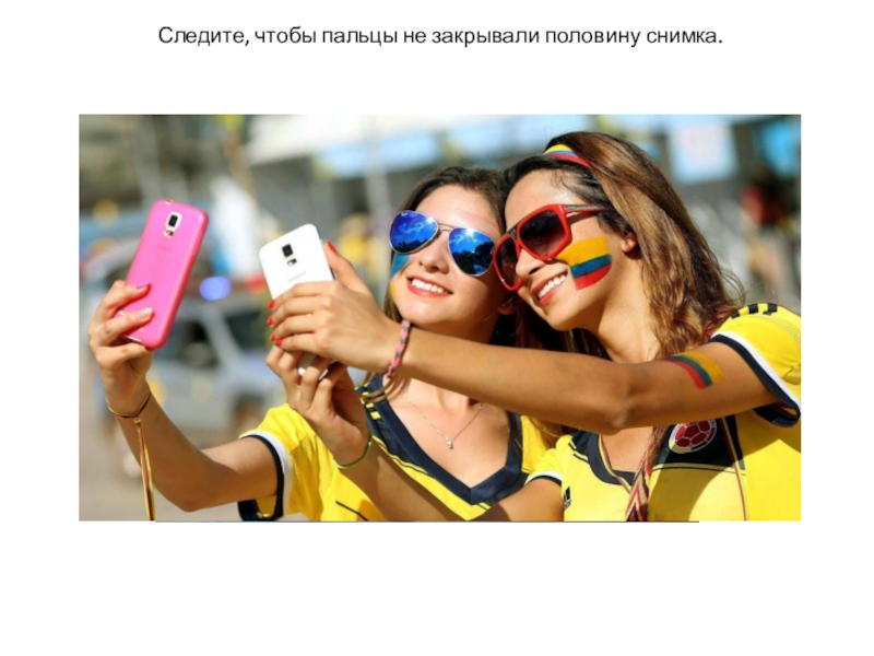Слайд 17Следите, чтобы пальцы не закрывали половину снимка.