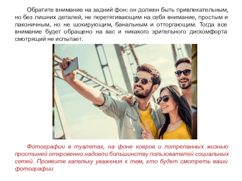 Слайд 18 Обратите внимание на задний фон: он должен быть привлекательным, но без