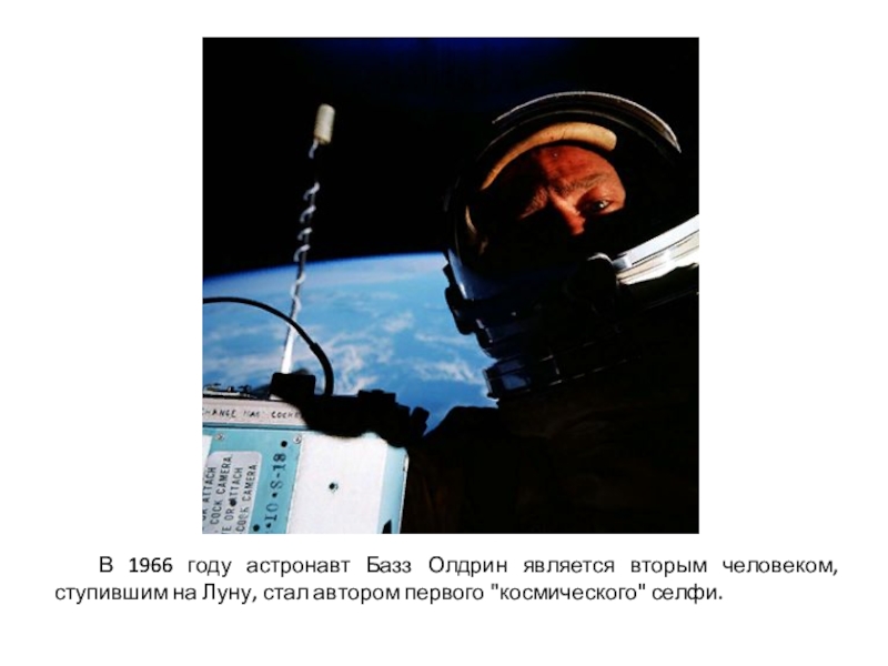 Слайд 7 В 1966 году астронавт Базз Олдрин является вторым человеком, ступившим на