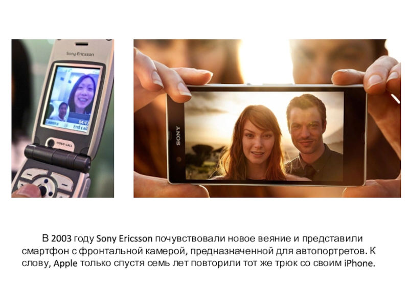 Слайд 8 В 2003 году Sony Ericsson почувствовали новое веяние и представили смартфон