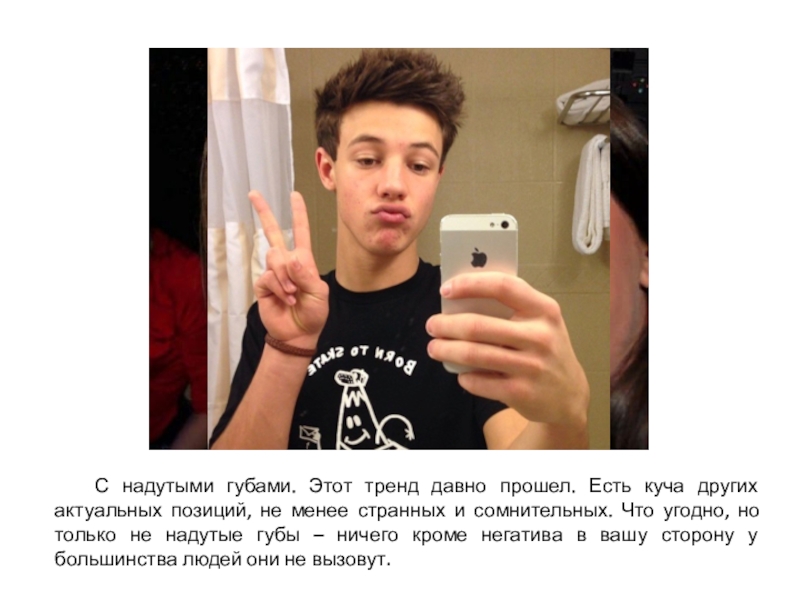 Слайд 21 С надутыми губами. Этот тренд давно прошел. Есть куча других актуальных