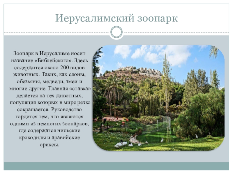 Зоопарк в Иерусалиме носит название «Библейского». Здесь содержится около 200