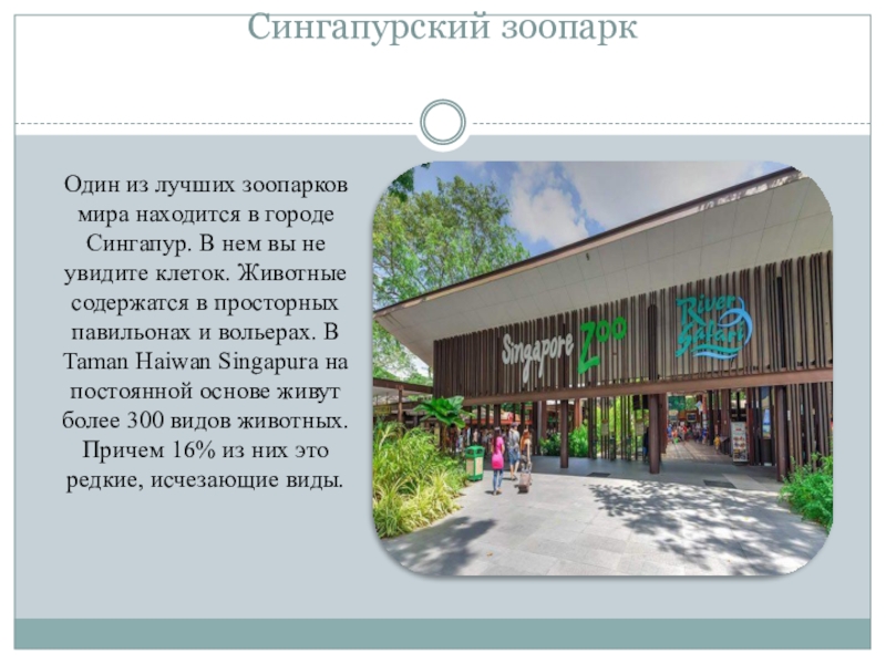 Один из лучших зоопарков мира находится в городе Сингапур. В