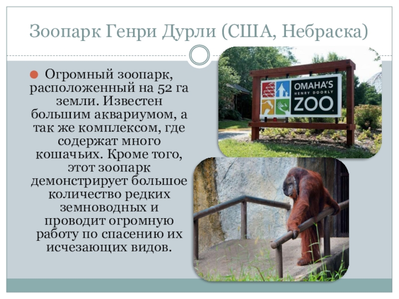 Слайд 11Зоопарк Генри Дурли (США, Небраска)