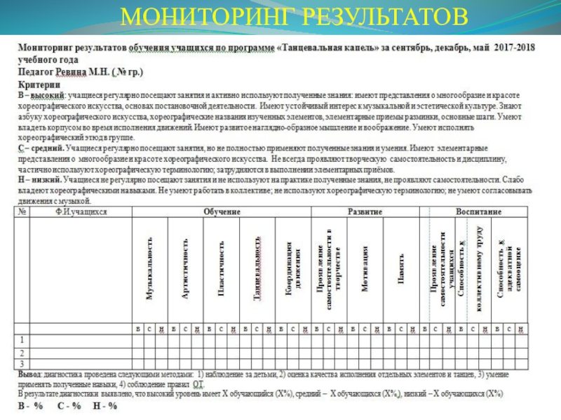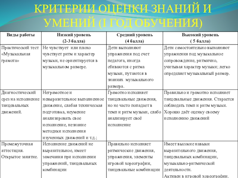 методы оценивания творческих результатов в рамках обучения по дополнительной общей образовательной программе «Танцевальная капель»