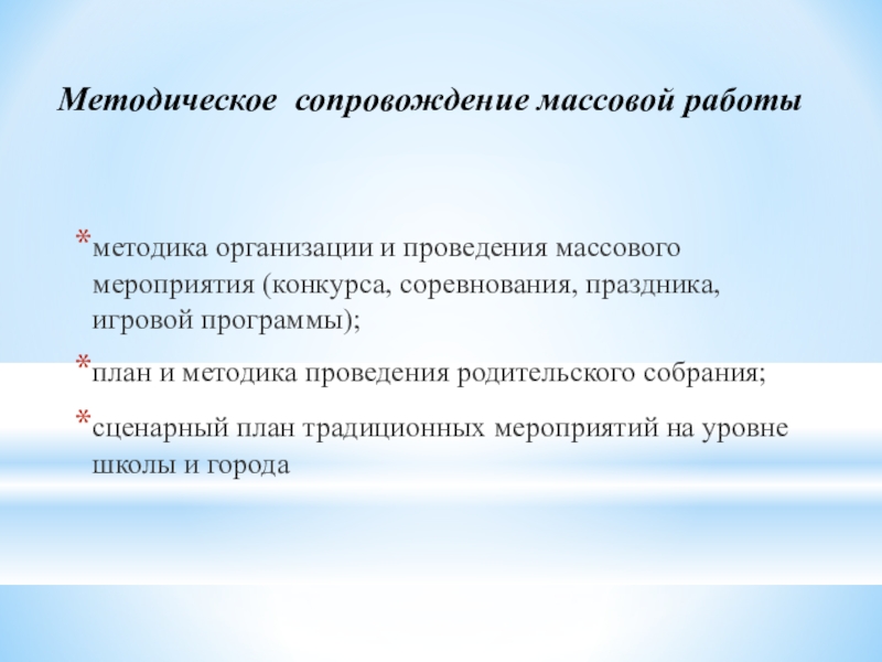 Слайд 26Методическое сопровождение массовой работы
