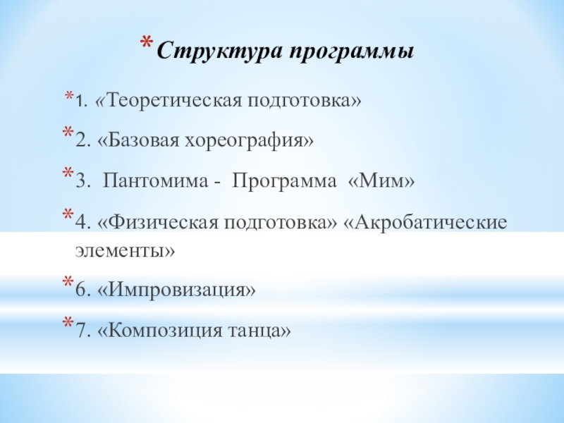 Программа тесно связана и опирается на ранее изученные дисциплины: хореография классического и народного танца.