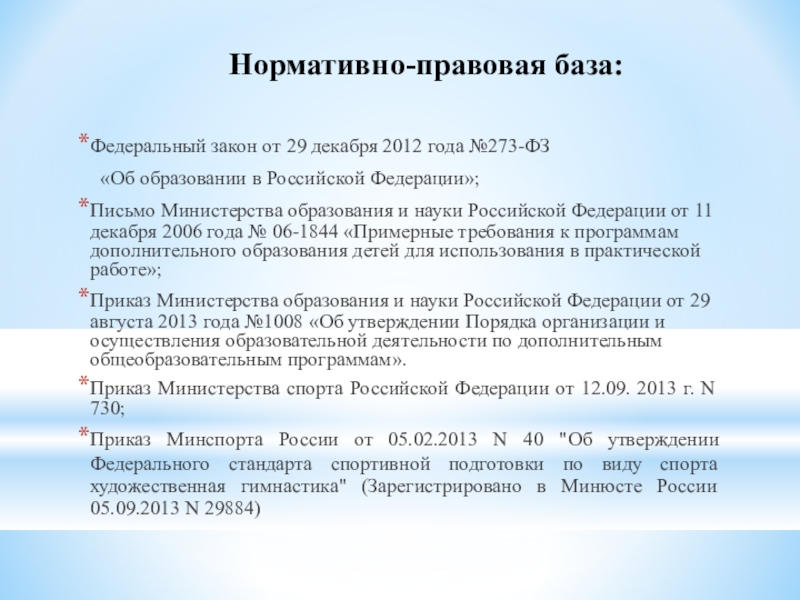 Слайд 3Нормативно-правовая база: