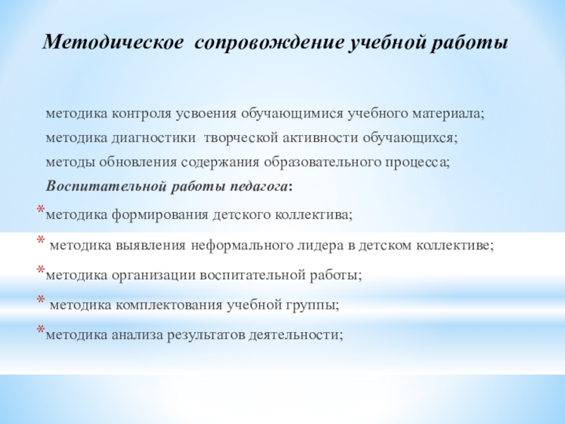 Слайд 25Методическое сопровождение учебной работы