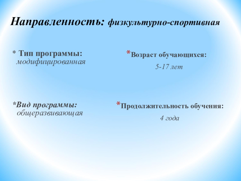 Слайд 4Направленность: физкультурно-спортивная