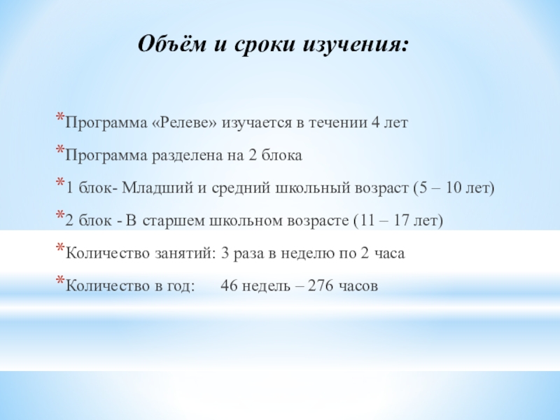 Слайд 21Объём и сроки изучения: