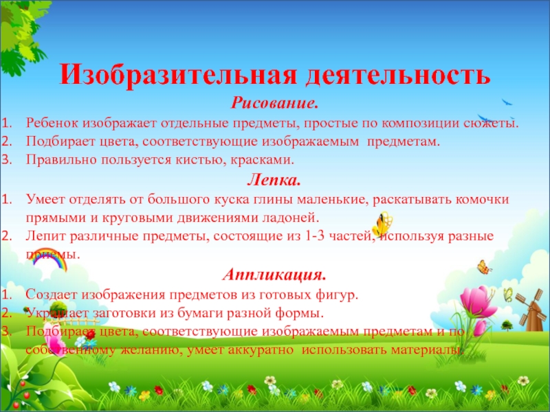 Ребенок изображает отдельные предметы, простые по композиции сюжеты.