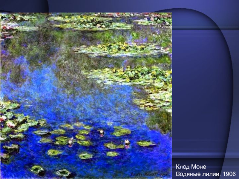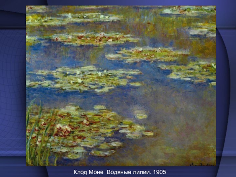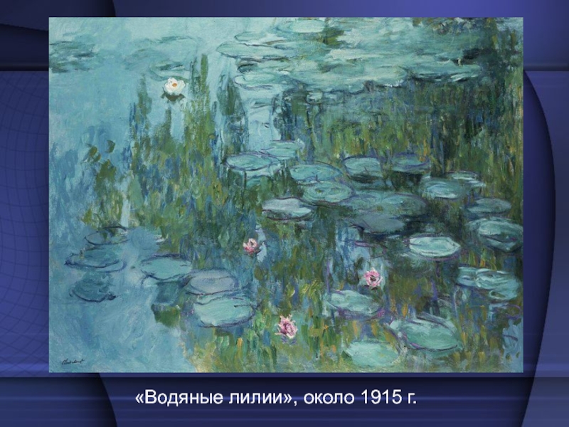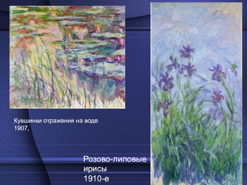 Розово-лиловые ирисы1910-еКувшинки отражения на воде1907,