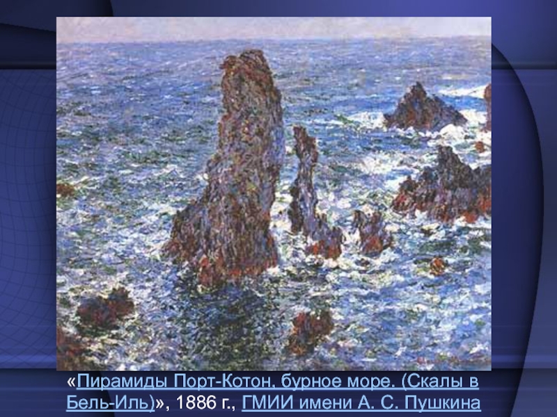 «Пирамиды Порт-Котон, бурное море. (Скалы в Бель-Иль)», 1886 г., ГМИИ имени А. С. Пушкина