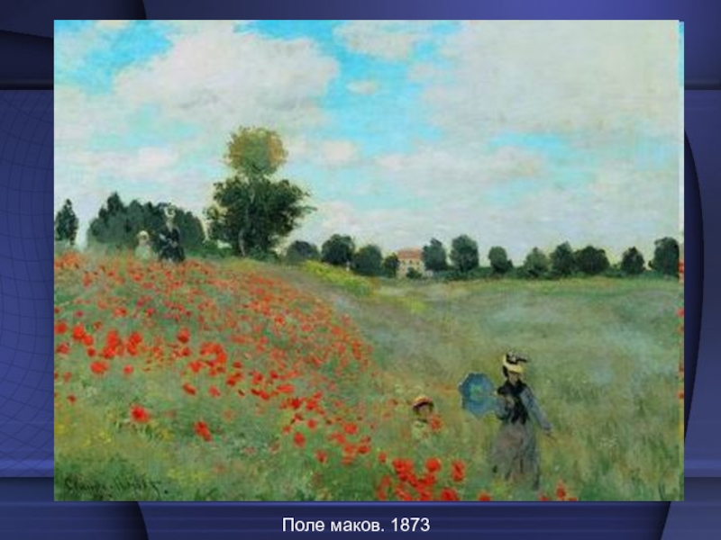 Особенность произведений французского художника в том, что все фигуры и пейзажи как бы складываются из световых пятен, они не имеют четких контуров, они будто размыты движением воздуха. Сама же фактура картин состоит из мазков. Кроме того, Моне усовершенствовал новый способ изображения в этюдах с натуры. Лучшими произведениями его творчества, относящимися к тому периоду, стали «Бульвар Капуцинов», «Поле маков у Аржантея», «Сирень на солнце».