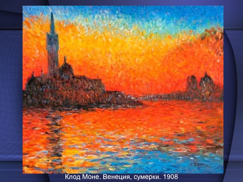 Слайд 72Клод Моне. Венеция, сумерки. 1908