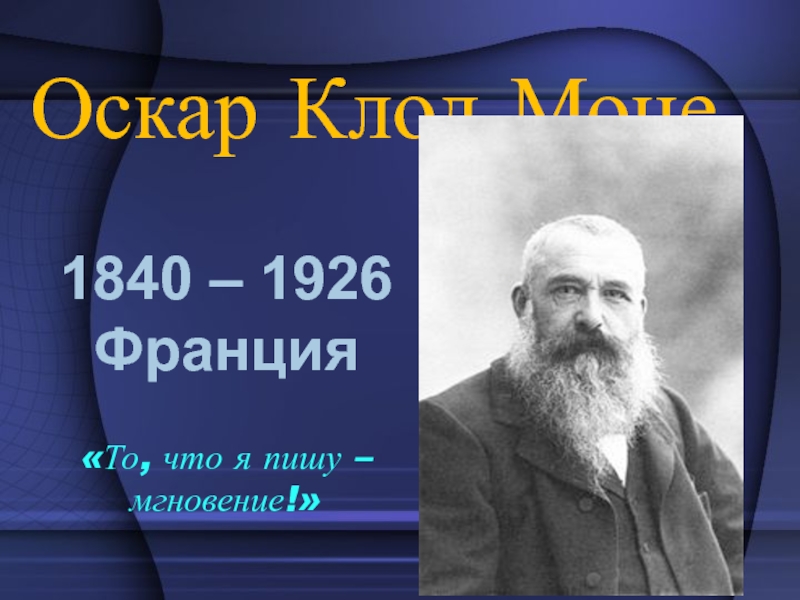 Оскар Клод Моне1840 – 1926Франция«То, что я пишу – мгновение!»