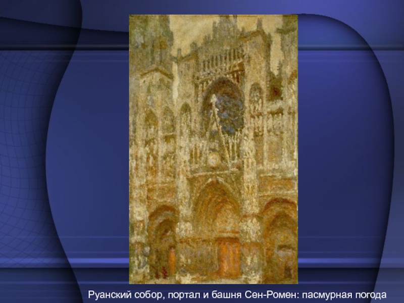 Слайд 68Руанский собор, портал и башня Сен-Ромен: пасмурная погода
