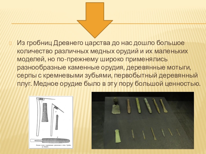 1.Существенных изменений в орудиях производства по сравнению с Ранним царством не произошло; изменения были, по-видимому, в основном количественные.