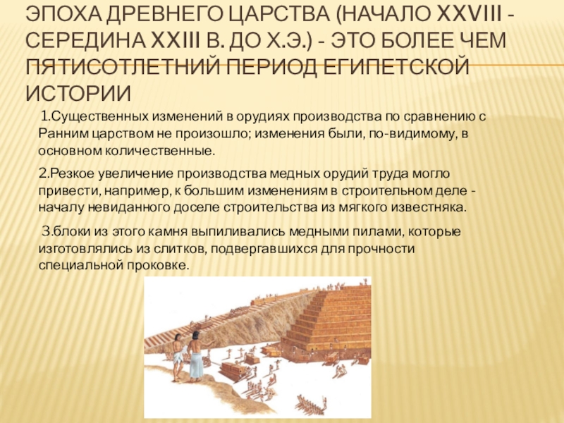 2.Резкое увеличение производства медных орудий труда могло привести, например, к большим изменениям в строительном деле - началу невиданного доселе строительства из мягкого известняка.