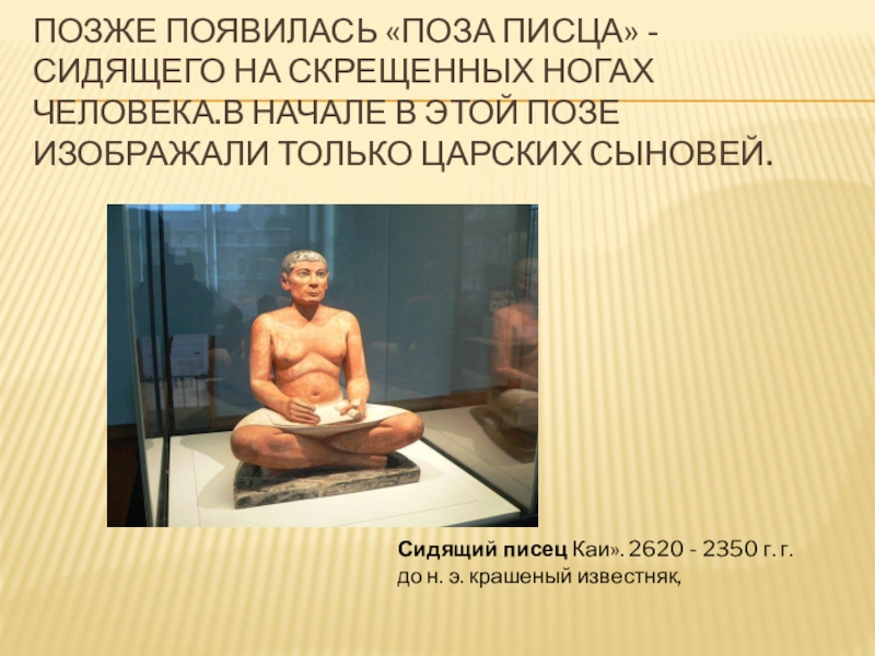 Сидящий писец Каи». 2620 - 2350 г. г. до н. э. крашеный известняк,