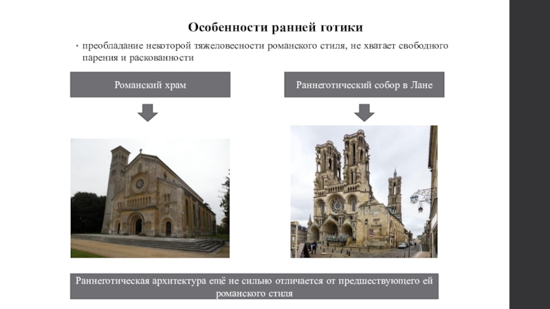 Раннеготическая архитектура ещё не сильно отличается от предшествующего ей романского стиля