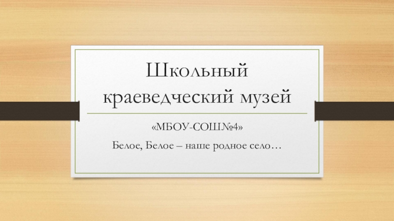 Школьный краеведческий музей«МБОУ-СОШ№4»Белое, Белое – наше родное село…