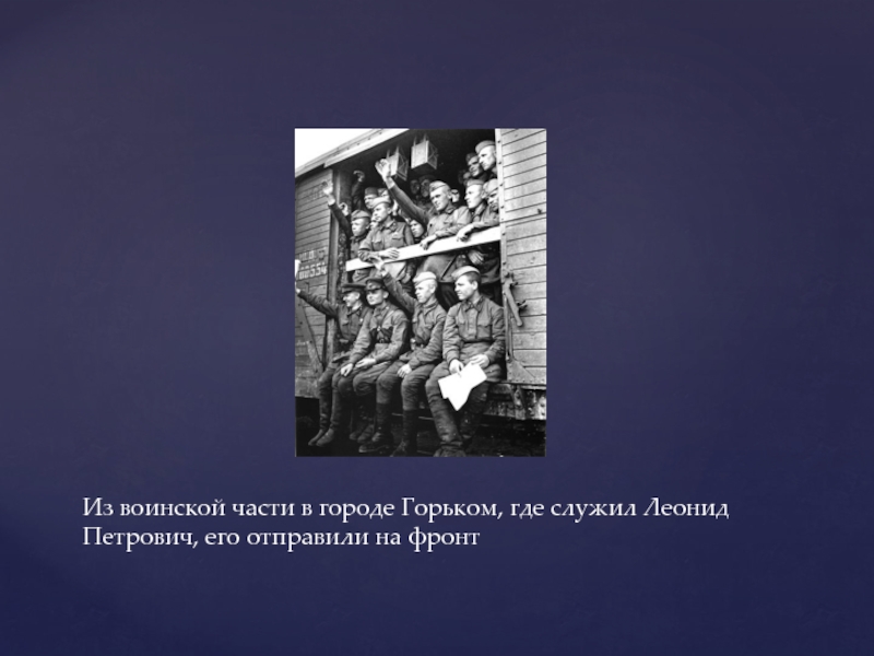 Слайд 6Из воинской части в городе Горьком, где служил Леонид Петрович, его