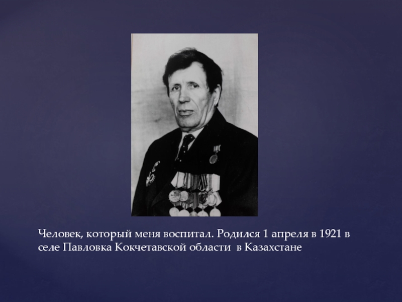 Слайд 5Человек, который меня воспитал. Родился 1 апреля в 1921 в селе