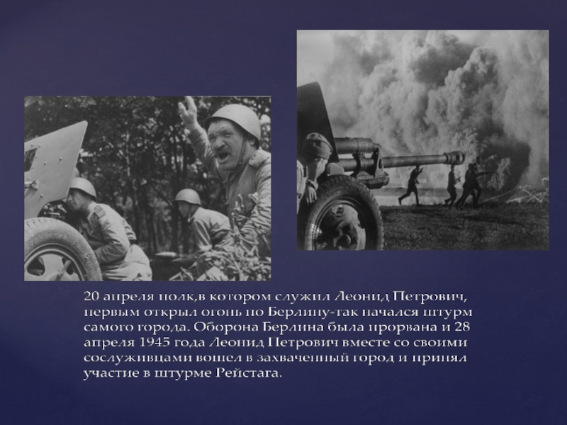 Слайд 12День победы 9 мая 1945 года Леонид Петрович встречал в Берлине.
