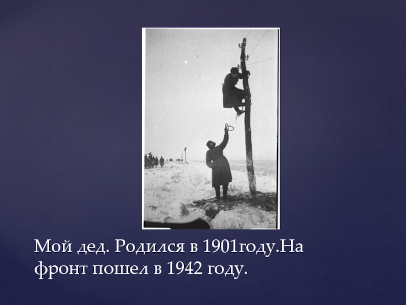 Слайд 3Мой дед. Родился в 1901году.На фронт пошел в 1942 году.