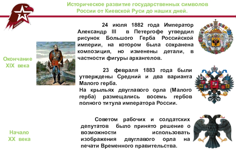 Советом рабочих и солдатских депутатов было принято решение о возможности использовать изображения двуглавого орла на печати Временного правительства.