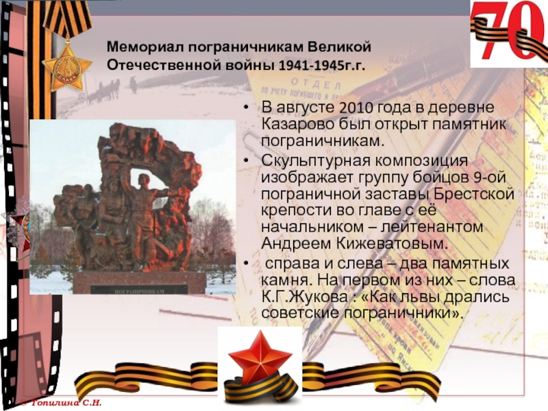 Слайд 18Мемориал пограничникам Великой Отечественной войны 1941-1945г.г.