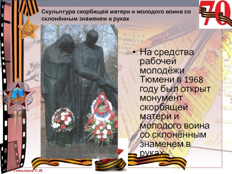 средства рабочей молодёжи Тюмени в 1968 году был открыт монумент скорбящей матери и молодого воина со склонённым знаменем в руках.