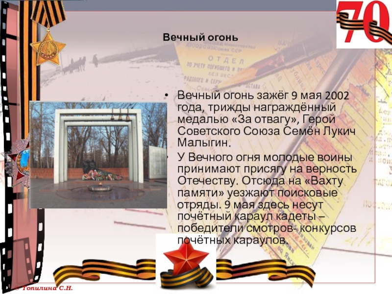 Вечный огонь зажёг 9 мая 2002 года, трижды награждённый медалью
