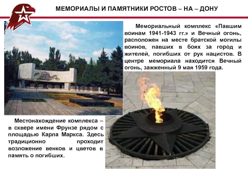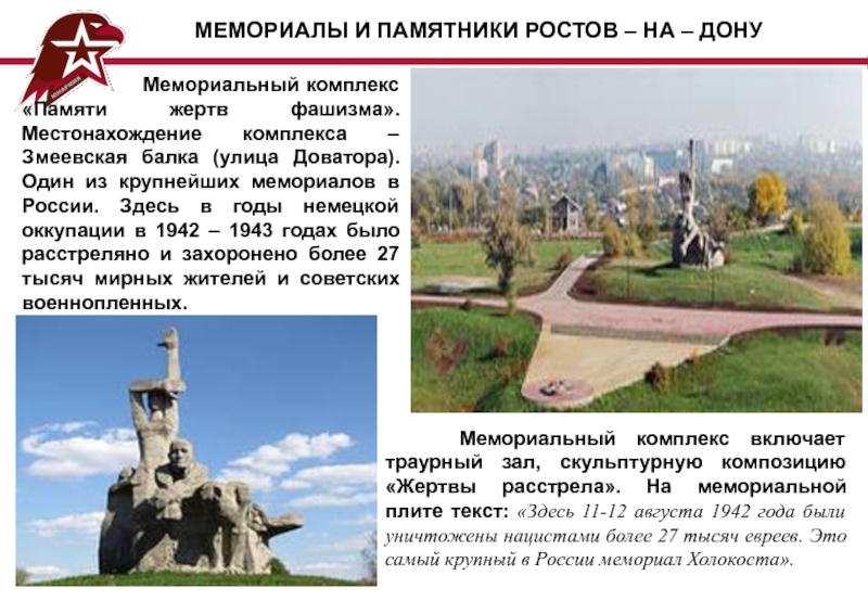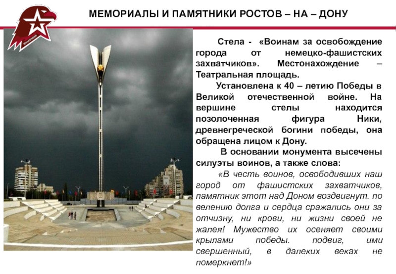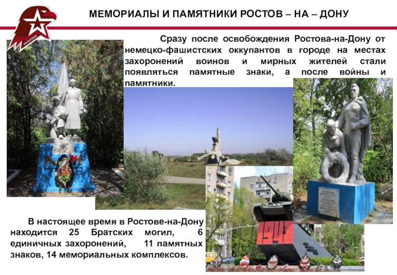 Слайд 10МЕМОРИАЛЫ И ПАМЯТНИКИ РОСТОВ – НА – ДОНУ