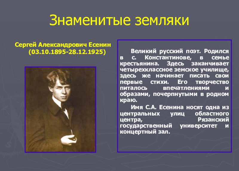 Великий русский поэт. Родился в с. Константинове, в