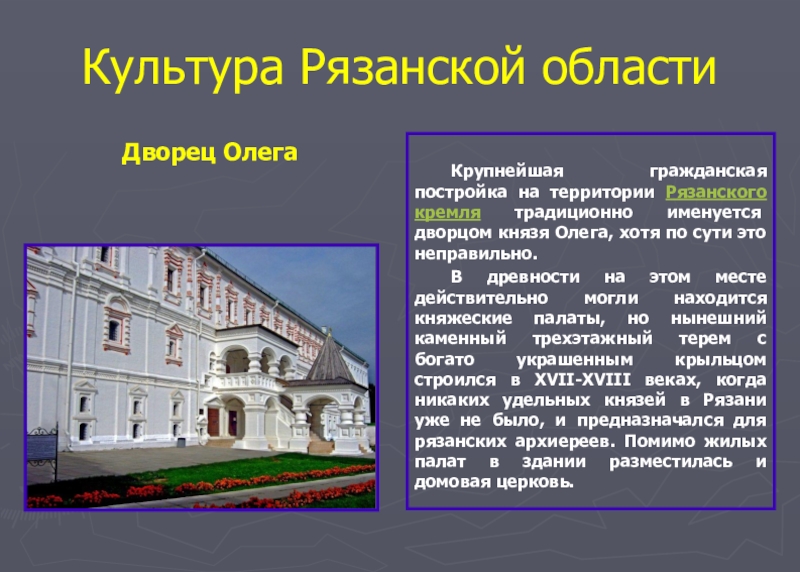 именуется дворцом князя Олега, хотя по сути это неправильно.