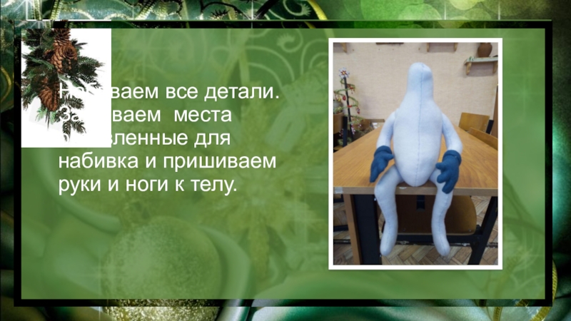 Набиваем все детали. Зашиваем места оставленные для набивка и пришиваем руки и ноги к телу.