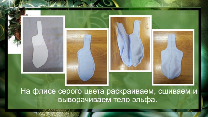 На флисе серого цвета раскраиваем, сшиваем и выворачиваем тело эльфа.