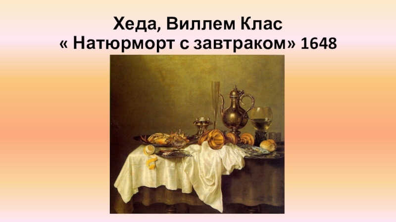 Питер Клас. Завтрак. 1646 г. Виллем Хеда. Завтрак с ежевичным с пирогом. 1631 г.