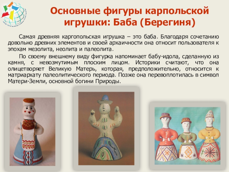 Основные фигуры карпольской игрушки: Баба (Берегиня)