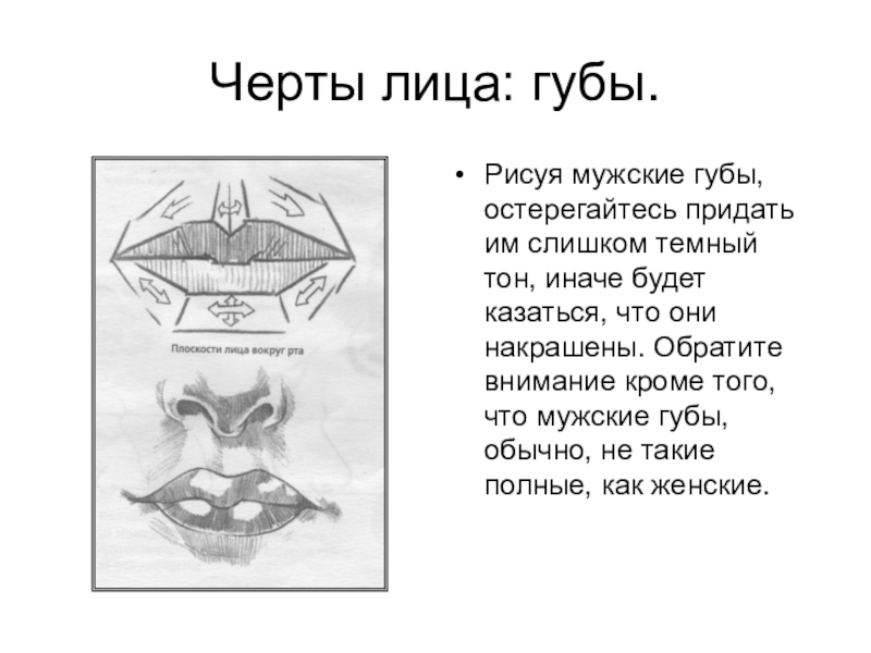 иначе будет казаться, что они накрашены. Обратите внимание кроме того, что мужские губы, обычно, не такие полные, как женские.