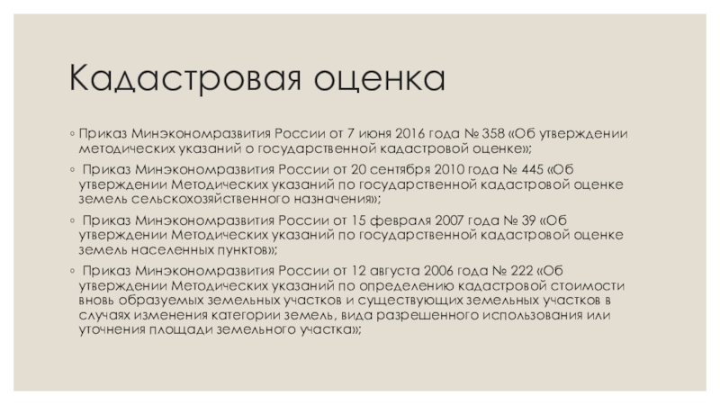 «Об утверждении методических указаний о государственной кадастровой оценке»;
