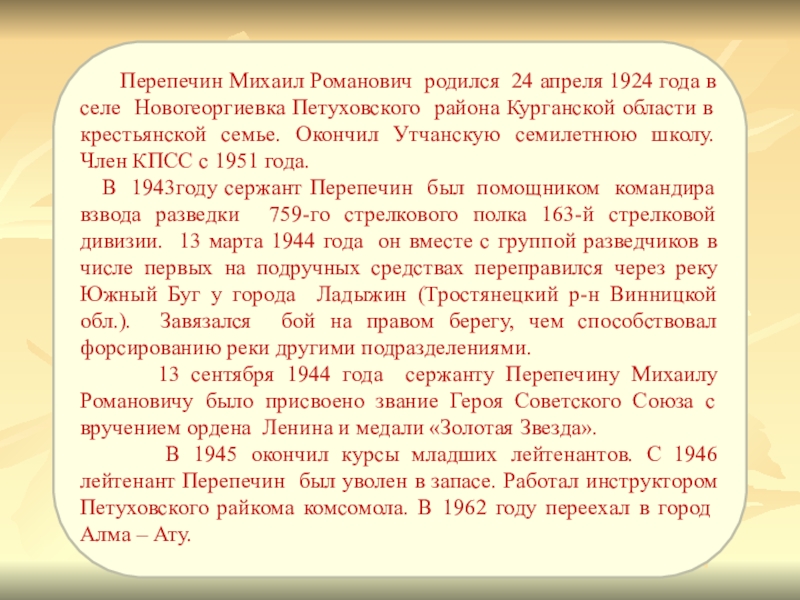 Перепечин Михаил Романович родился 24 апреля 1924