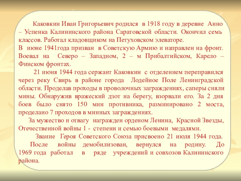 Каковкин Иван Григорьевич родился в 1918 году