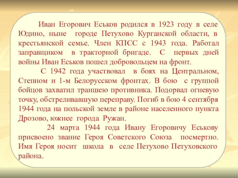 Иван Егорович Еськов родился в 1923 году в