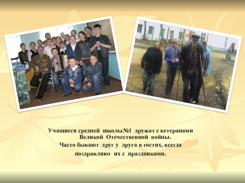 Слайд 25Учащиеся средней школы№1 дружат с ветеранами Великой Отечественной войны.