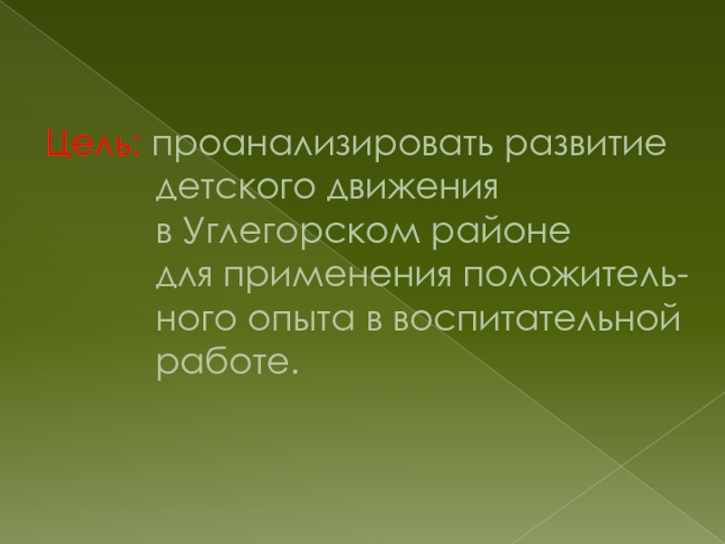 Цель: проанализировать развитие детского движения в Углегорском районе для применения положитель-